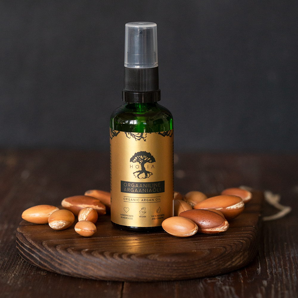 A marokkói HOIA argánolaj hidegen sajtolt, bio, finomítatlan és környezetbarát módon előállított. Az argánolaj minden bőrtípusra alkalmas, beleértve a száraz, érett, érzékeny és zsíros bőrt is, csökkenti a ráncokat és a finom vonalakat, segíti a bőrsejtek regenerálódását, elősegíti a bőr kollagéntermelését.Az argánolaj antimikrobiális tulajdonságokkal rendelkezik, enyhíti a száraz és hámló bőrt, pikkelysömört, dermatitist és ekcémát. Hajmaszkként használható: erősebbé, egészségesebbé teszi a hajat, javítja szerkezetét és védi a környezeti stressztől. Az argánolaj szakállápolásra is alkalmas, elősegíti a köröm növekedését, ajkakra és kézre is használható.